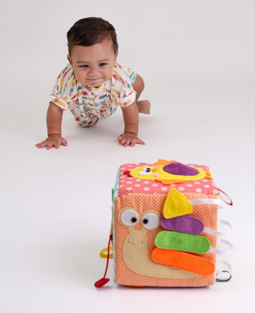 Indicado para bebês a partir dos 6 meses, o cubo incentiva o sentar, o explorar, o uso do tato fino, a coordenação motora e o reconhecimento de novas sensações. Cada lado apresenta uma atividade diferente, são 6 estímulos inteligentes para puxar, apertar, amassar, girar, observar cores vibrantes e descobrir novos movimentos.